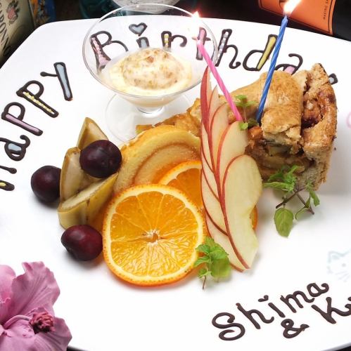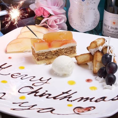 誕生日・記念日にはメッセージ付きデザートプレートプレゼント♪主役を喜ばすサプライズのお手伝い致します!!事前にご相談ください☆