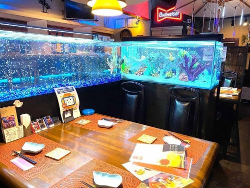 当店自慢のアクアリウムが見えるお席!営業時間外のお昼も予約可能です!!女子会デートに人気☆